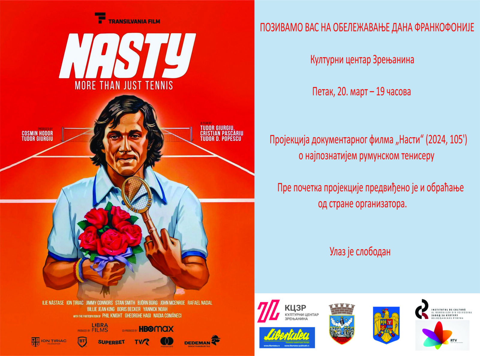 Pozivnica Dani frankofonije 2026. – Zrenjanin – srpski jezik (1) Povezane vesti:Pozivnica Dani frankofonije 2026. - Zrenjanin - srpski jezik (1)POZIV ZA VANREDNU SEDNICU SKUPŠTINE AKCIONARA 08.01.2026.Plakat - predstava - 17. 1. 2026.Izvestaj sa vanredne sednice Skupstine akcionara 08.01.2026Plakat - baletska predstava Lepotica i zver - 18. 1. 2026.Plakat - Bozicna misolovka - 11. 1. 2026.